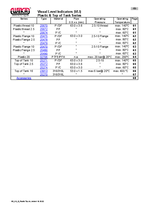 EconomyLine, SmartLine, StandardLine, HighPressureLine, PetroLine, LowDensityLine, PlasticLine, Top of Tank - Visual Level Indicators (ToT VLI), Top of Tank Line - Plastic, Accessories, Magnetic Switches, Level Transmitters, Floats, Indicator Rails / Measuring Scales, Top of Tank Line - SS