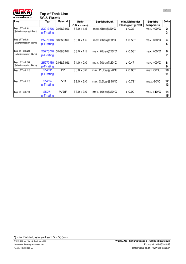 EconomyLine, SmartLine, StandardLine, HighPressureLine, PetroLine, LowDensityLine, PlasticLine, Übertank-Niveauanzeigen, Top of Tank Line - Plastic, Zubehör, Magnetschalter, Messwertgeber, Schwimmer, Anzeigeschienen und Messskalen, Top of Tank Line - SS